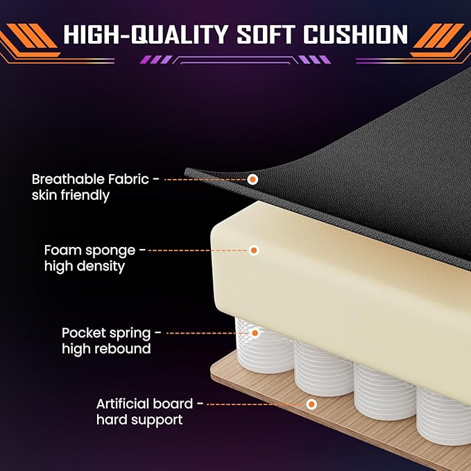 - Individually Pocket Spring - The seat cushion of game chair features pocket springs, a technique commonly used in sofas. Each spring operates independently, conforming to pressure and body weight to deliver resilient support and a luxurious comfort experience comparable to high-end gaming chairs.