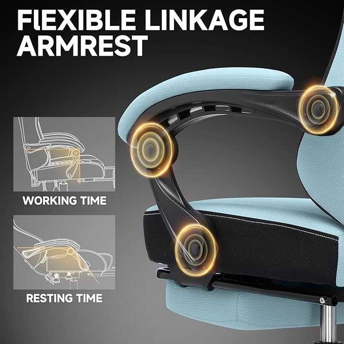- Adaptive Linkage Armrests:Experience seamless support as you recline. The linkage armrests move with the backrest, providing consistent arm and shoulder support at any angle. Ideal for multitasking, relaxing, or maintaining posture during extended computer use.